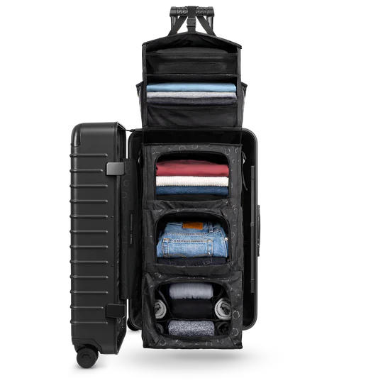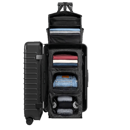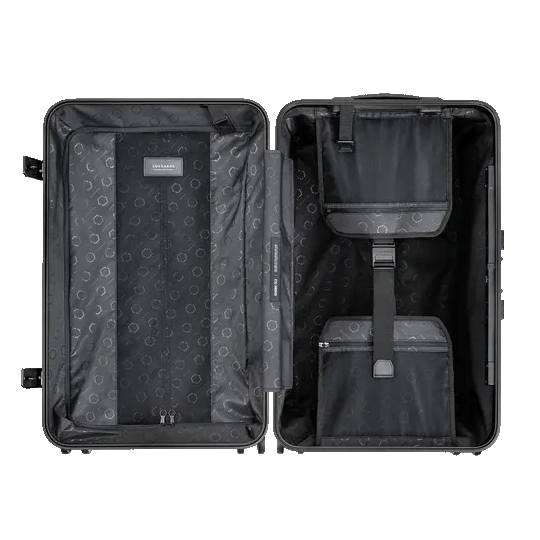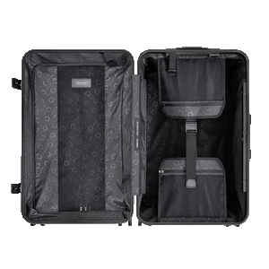Solgaard's trunk is a large check-in suitcase with a built-in shelving system and unbreakable polycarbonate shell ready for whatever adventure awaits.