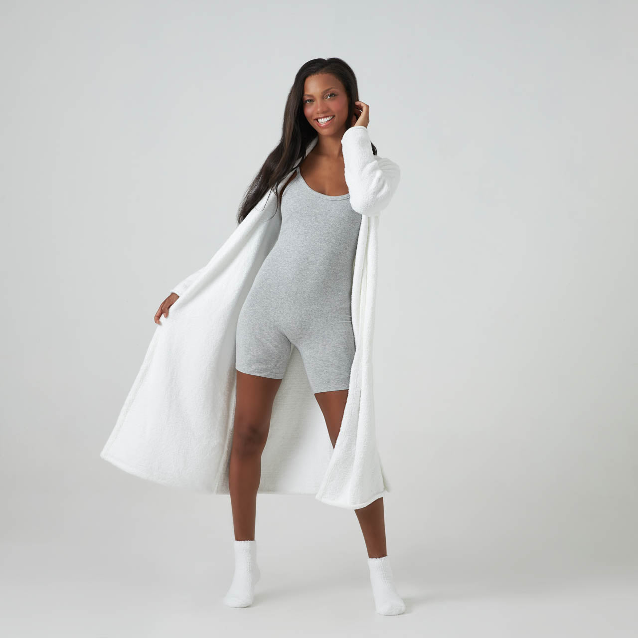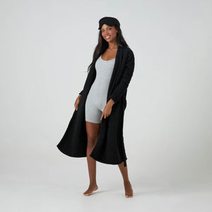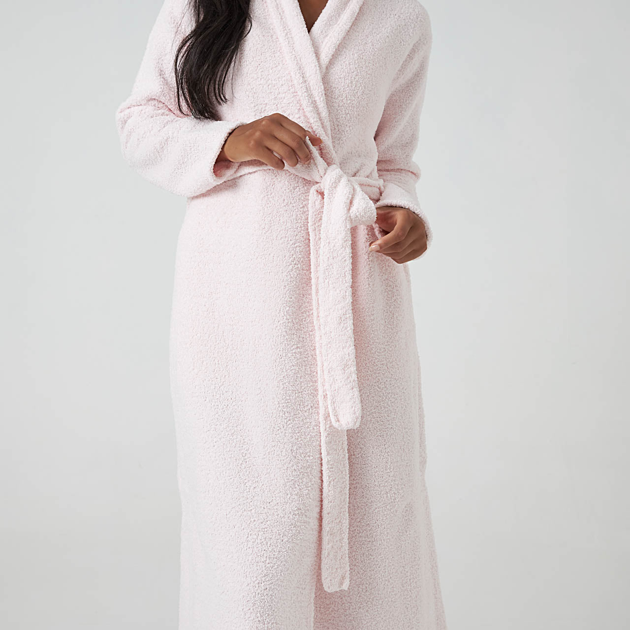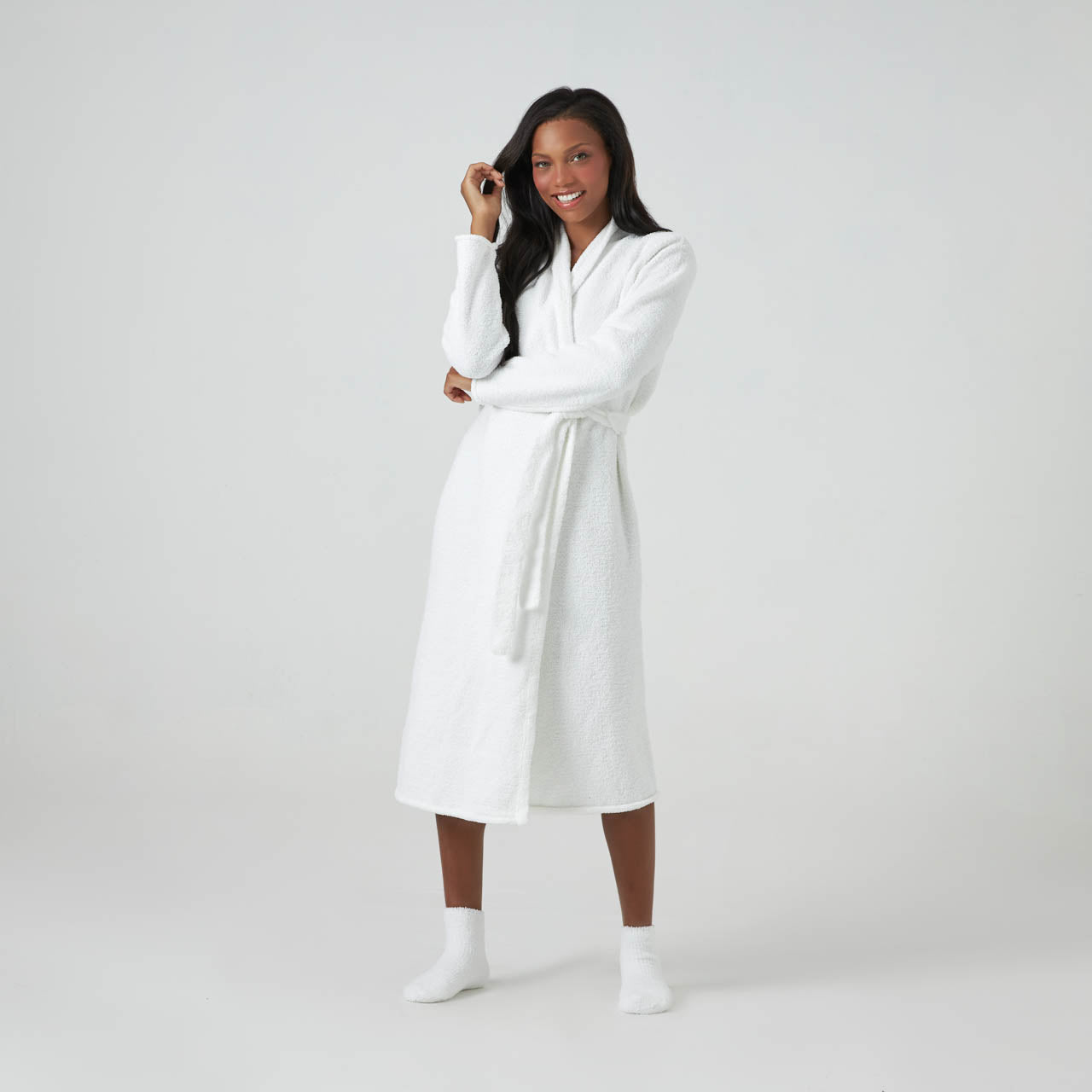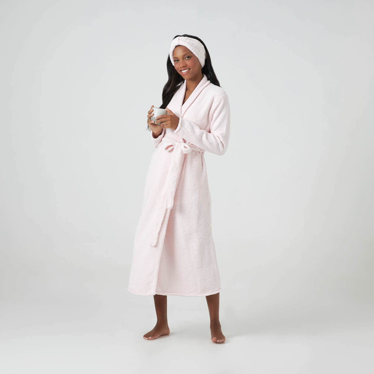 When you’re wearing the Seasonless Robe, you can enjoy the cloud-like comfort of an ultra plush robe, even if you live in a warmer climate. Woven from our fine-weave Chenilla Fine™ yarn, which is more delicate, lightweight and airy than our original Chenilla Classic™ yarn, you can lounge in unmatched comfort no matter the weather. It is longer than our other robes, providing an elegant silhouette and extra coverage. Available in the staple colors pink, white, black and now iris and ice blue, there’s sure to be a shade that fits your taste. Perfect for work-from-home life or indulgent leisure, the Seasonless Robe will quickly become a “must-have” staple in your wardrobe. (Getting dressed can wait!) Relax in the best, you deserve it. Once you’ve experienced Kashwére, the rest won’t compare. So go ahead, wrap yourself in the effortless luxury of Kashwére that hugs you back.