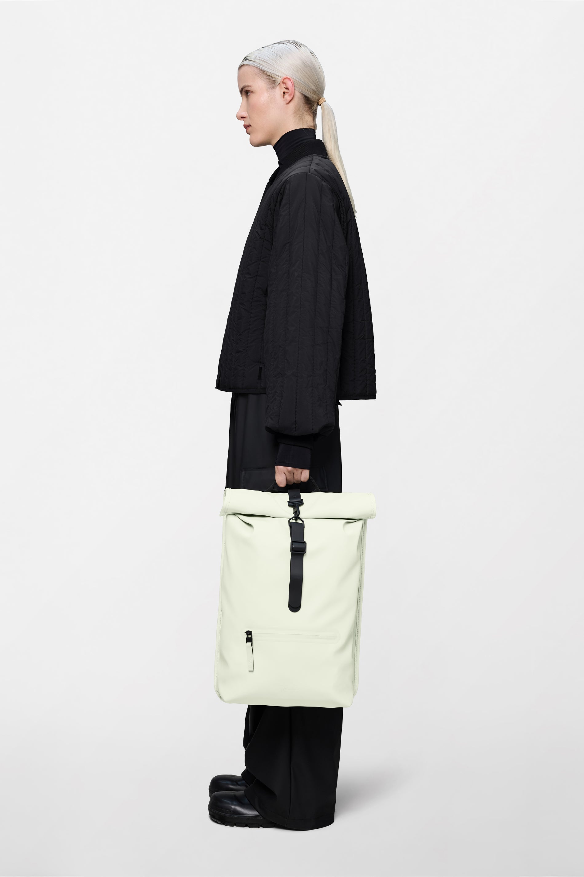 A commuter-ready staple built for biking or city travel, the Rolltop Rucksack combines waterproof protection with a secure, ride-proof fit. Features include a rolltop closure with carabiner, laptop access, and adjustable straps for comfort and stability.