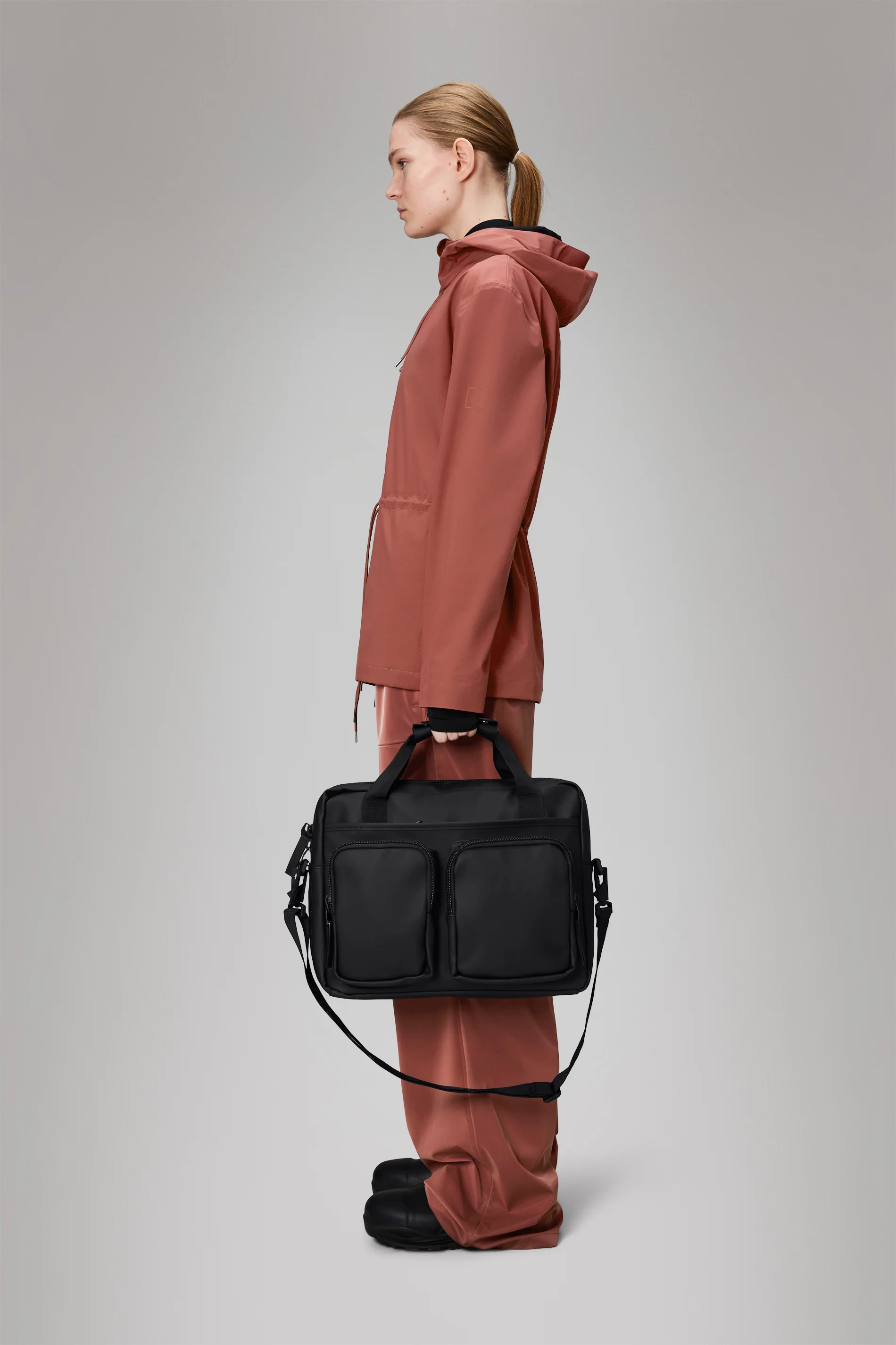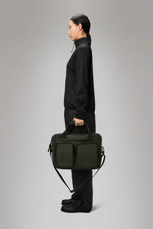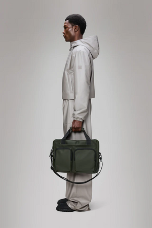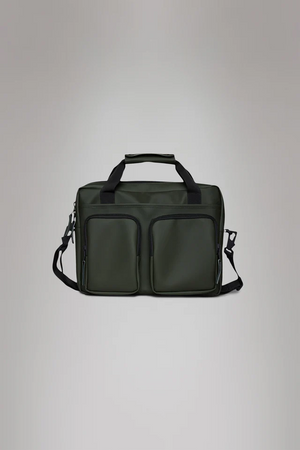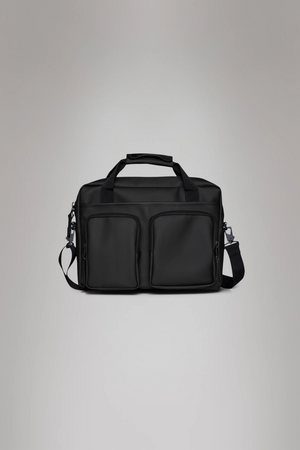 A waterproof laptop bag built for commuting and short trips. The Texel Tech Bag offers a padded sleeve for 15” devices, internal organization for tech accessories, and a trolley sleeve for seamless travel.