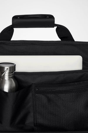 Spacious main compartment with padded 15” laptop sleeve