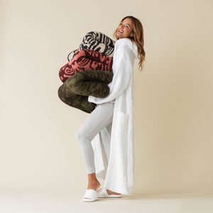 Originally created in 1999, our iconic damask pattern is recognized around the world and was even the inspiration for our logo. The intricate two-toned pattern is sure to add visual allure to any space. Plus, it is double-sided and double the thickness of our original throw, so no matter how you drape it on your sofa, there is never a right or wrong side to cuddle up with. Our iconic Damask Throw is adored in relaxation rooms of luxury spas and five-star hotels around the world. (It’s even the #1 pattern in Kashwére Japan!) It is so beloved that imitators often seek to replicate it. We know imitation is the highest form of flattery, but you deserve the best and the original. Once you’ve experienced Kashwére’s signature Chenilla Cloud™, imitations can’t compare. Fair warning: you might want to go ahead and order two because this throw quickly becomes every pet’s favorite.